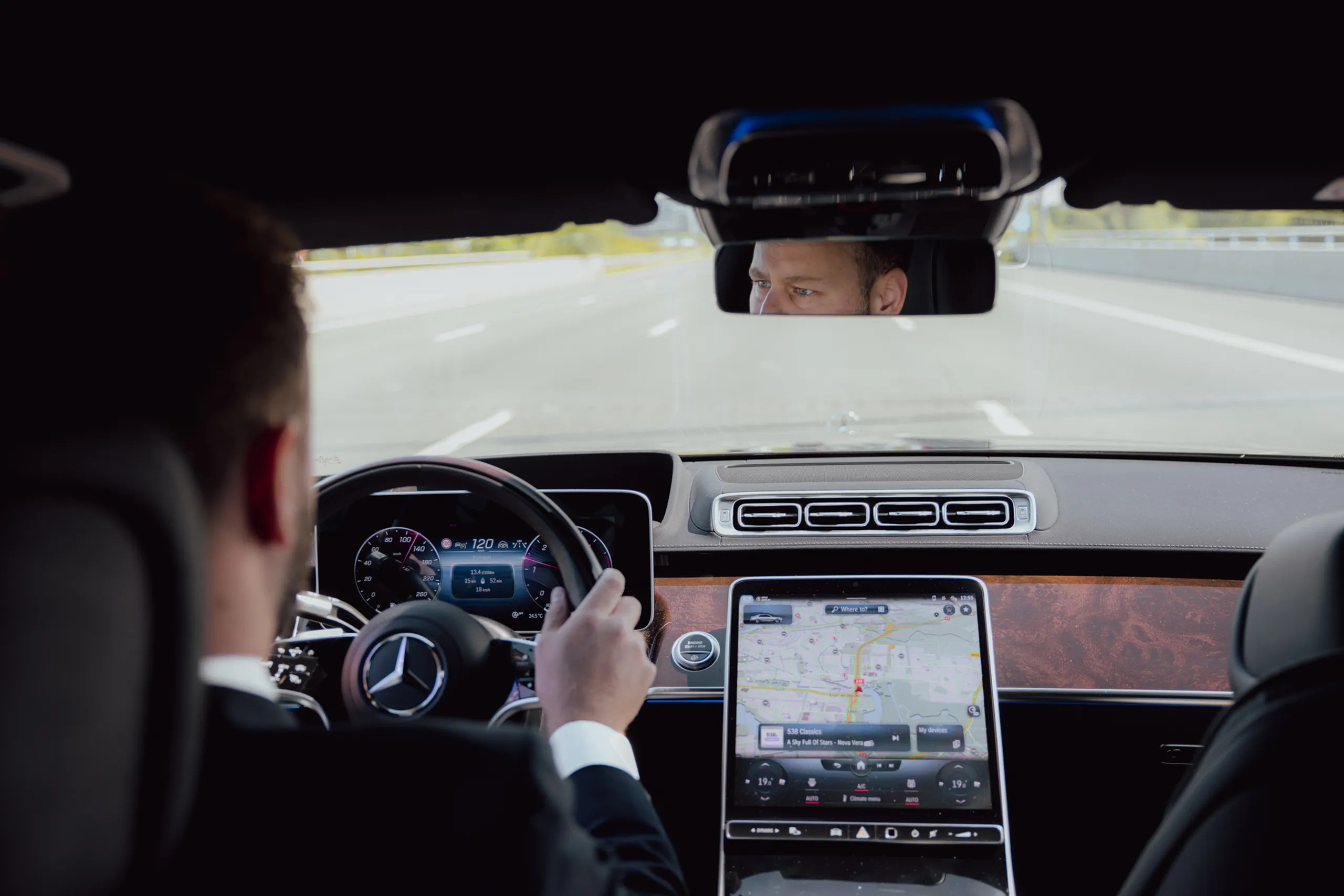 Experience premium travel in a Mercedes-Benz 2021 AMG Line, featuring elegant tan leather seating. Whether you're heading to the airport or travelling anywhere across Ireland, we ensure a smooth, reliable, and stress-free ride — every time.